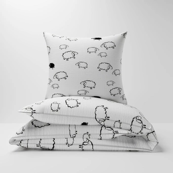 Pościel z kory 160x200 + poszewka na poduszkę 50x60 | 055bial | biała | owieczki