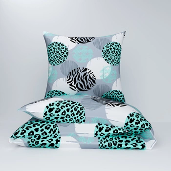 Pościel z kory 160x200 + poszewki na poduszkę 2*70x80 | 085s-m | szaro miętowa | koła i panterka