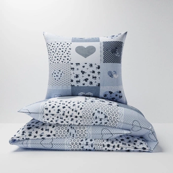 Pościel bawełniana 160x200 + poszewka na poduszkę 70x80 | 137sza | szara | patchwork serca