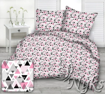 Pościel dla dziecka bawełniana 140x160 + poszewka na poduszkę 70x80 | 381róż | szaro różowa | wzór geometryczny