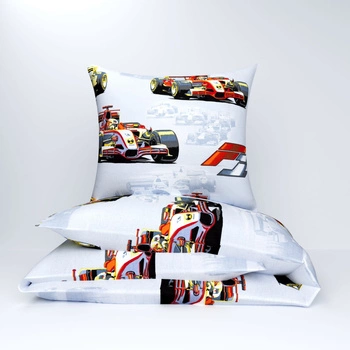 Pościel bawełniana 140x200 + poszewki na poduszkę 2*70x80 | 238sza | szara | auta formuła