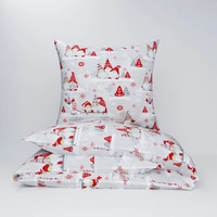 Pościel bawełniana 140x200 + poszewka na poduszkę 50x60 | 421sza | szara | wzór świąteczny skrzaty