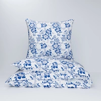 Pościel bawełniana 140x200 + poszewki na poduszkę 2*70x80 | 116bgr | biało granatowa | kwiaty