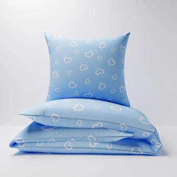 Pościel dla dziecka bawełniana 140x160 + poszewka na poduszkę 70x80 | 070nie | niebieska | serca walentynki