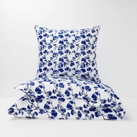 Pościel dla dziecka bawełniana 120x160 + poszewka na poduszkę 50x60 | 195b-g | biało granatowa | kwiaty