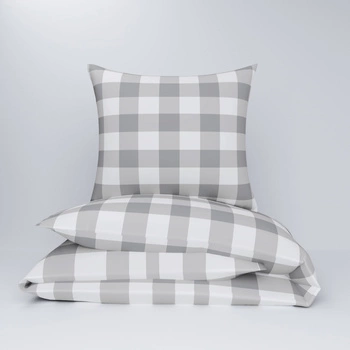 Pościel flanela 140x200 + poszewka na poduszkę 50x60 | krata szara | biało szara | kratka