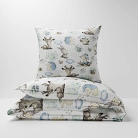 Pościel dla dziecka bawełniana 100x135 + poszewka na poduszkę 40x60 | 014las | biało niebieska | zwierzątka leśne