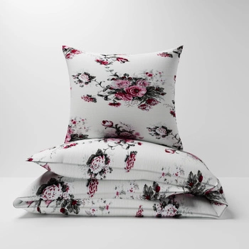 Pościel z kory 160x200 + poszewki na poduszkę 2*70x80 | 082bia | biała | kwiaty róże