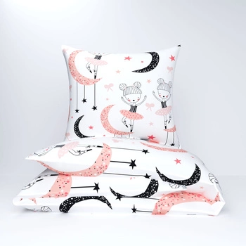Pościel dla dziecka bawełniana 120x160 + poszewka na poduszkę 50x60 | 436łosoś | biała | baletnice