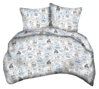 Pościel bawełniana 140x200 + poszewka na poduszkę 50x60 | 400Ssz | szara | skrzaty