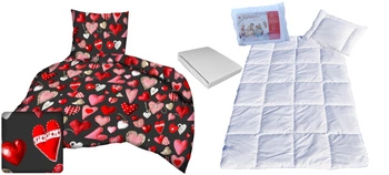 Pościel bawełniana 140x200 + 70x80 + 40x40 | 073b-c | biało czerwona | serca walentynki