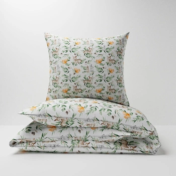 Pościel bawełniana 140x200 + poszewka na poduszkę 50x60 | 314wie | biała | sarenki i króliczki