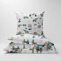 Pościel dla dziecka bawełniana 140x160 + poszewka na poduszkę 70x80 | 138nie | niebieska | safari auta