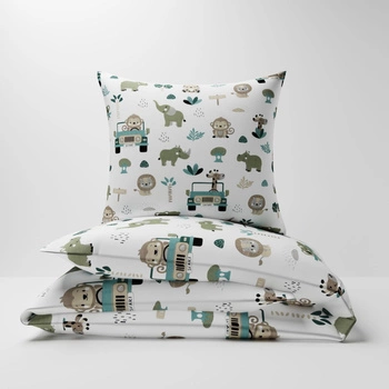 Pościel dla dziecka bawełniana 100x135 + poszewka na poduszkę 40x60| 138zie | zielona | safari autka