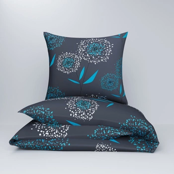 Pościel z kory 160x200 + poszewka na poduszkę 50x60 | 376turkus | szaro turkusowa | dmuchawce