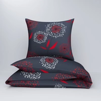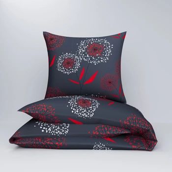 Pościel z kory 200x220 + poszewki na poduszkę 2*70x80 | 376red | szaro czerwona | dmuchawce