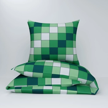 Pościel z kory 140x200 + poszewki na poduszkę 2*70x80 | 309z3D | zielona | krata 3D