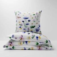 Pościel z kory 140x200 + poszewki na poduszkę 2*70x80 | 348biały | biała | kwiaty bratki