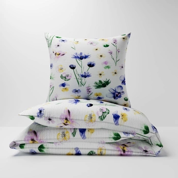 Pościel z kory 160x200 + poszewka na poduszkę 70x80 | 348biały | biała | kwiaty bratki