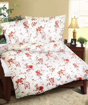 Pościel z kory 200x220 + poszewki na poduszkę 2*70x80 | 120los | łososiowa | kwiaty