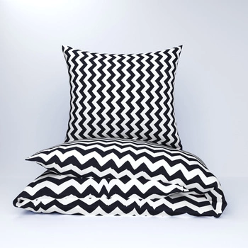 Pościel z kory 200x220 + poszewki na poduszkę 2*70x80 | 407czarny | czarna | zygzaki