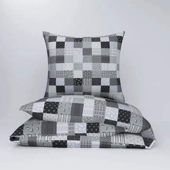 Pościel z kory 140x200 + poszewka na poduszkę 50x60 | 107sss | biało szara | patchwork