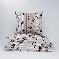 Pościel z kory 140x200 + poszewki na poduszkę 2*70x80 | 057brąz | brązowa | kwiaty na pasach