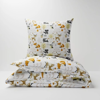 Pościel dla dziecka bawełniana 100x140 + poszewka na poduszkę 40x60 | 014jeleń | biało pomarańczowa | zwierzątka leśne