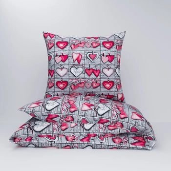 Pościel z kory 160x200 + poszewki na poduszkę 2*70x80 | 073Ncz | szaro czerwona | Walentynki serca
