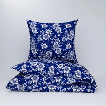 Pościel dla dziecka bawełniana 120x180 + poszewka na poduszkę 70x80 | 116gra | granatowa | kwiaty