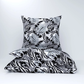 Pościel bawełniana 140x200 + poszewka na poduszkę 50x60 | 455Nsz | biała | liście monstery