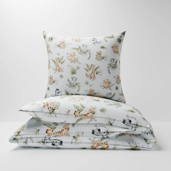 Pościel bawełniana 160x200 + poszewka na poduszkę 70x80 | 104biały | biała | zwierzątka safari
