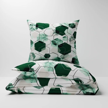 Pościel bawełniana 200x200 + poszewki na poduszkę 2*70x80 | D208Nbu | szaro zielona | plastry miodu