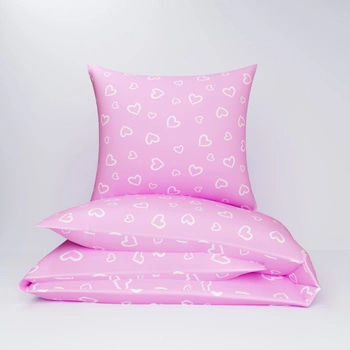 Pościel bawełniana 140x200 + poszewka na poduszkę 50x60 | 070now | różowa | serca walentynki