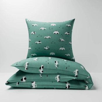 Pościel dla dziecka bawełniana 120x160 + poszewka na poduszkę 50x70 | 486zie | zielona | pojazdy autka