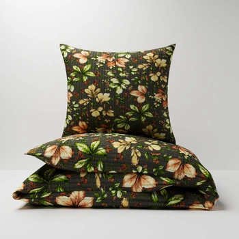 Pościel z kory 140x200 + poszewki na poduszkę 2*70x80 | 036zielony | zielona | kwiaty