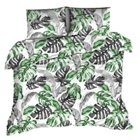 Pościel z kory 140x200 + poszewki na poduszkę 2*70x80 | 455b-z | biało zielona | liście monstera