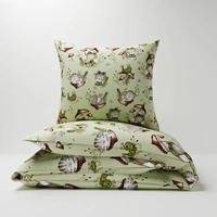 Pościel bawełniana 140x200 + poszewki na poduszkę 2*70x80 | 210zab | zielona | koty żabki słonie