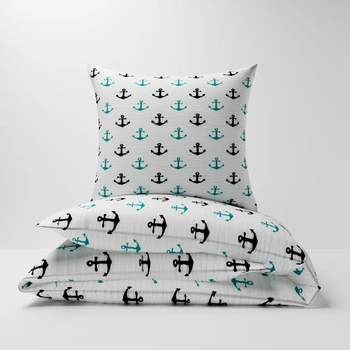 Pościel z kory 160x200 + poszewka na poduszkę 50x60 | 074trk | biała | kotwice