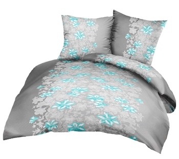 Pościel z kory 200x220 + poszewki na poduszkę 2*70x80 | 018trk | szara | kwiaty