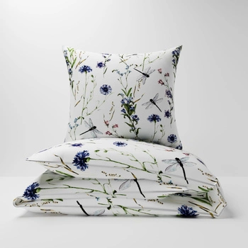 Pościel bawełniana 200x220 + poszewki na poduszkę 2*70x80 | 129kwi | biała | kwiaty ważki