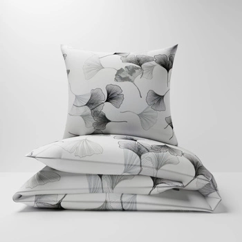 Pościel bawełniana 200x220 + poszewki na poduszkę 2*70x80 | 324b-s | biało szara | liście miłorzębu