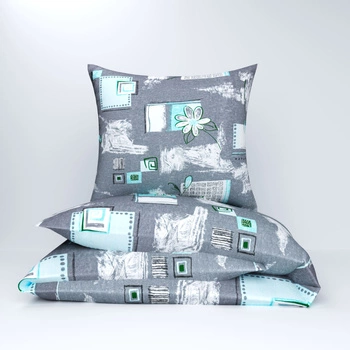 Pościel z kory 140x200 + poszewki na poduszkę 2*70x80 | 041s-t | szaro turkusowa | kwiaty