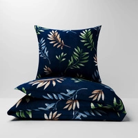 Pościel bawełniana 200x220 + poszewki na poduszkę 2*70x80 | 247cie | granatowa | liście