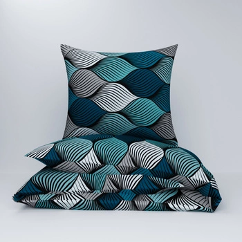 Pościel bawełniana 200x220 + poszewki na poduszkę 2*70x80 | 163mor | morski | fale