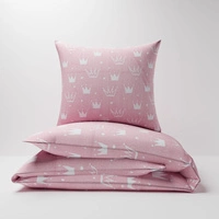Pościel bawełniana 200x220 + poszewki na poduszkę 2*70x80 | 436pud | różowa | korony