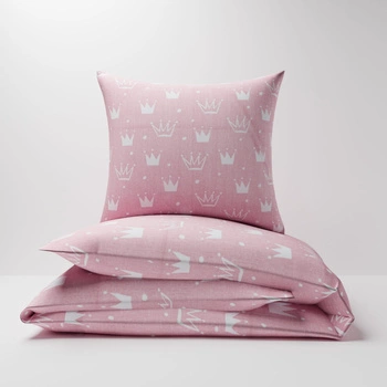 Pościel bawełniana 160x200 + poszewka na poduszkę 50x60 | 436pud | różowa | korony