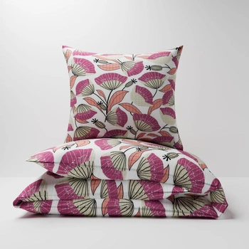 Pościel z kory 160x200 + poszewka na poduszkę 70x80 | 261róż | różowa | kwiaty