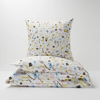 Pościel dla dziecka bawełniana 140x160 + poszewka na poduszkę 50x60 | 004pol | biała | polne kwiaty