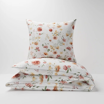 Pościel bawełniana 200x220 + poszewki na poduszkę 2*70x80 | 415red | biało czerwona | polne kwiaty